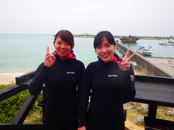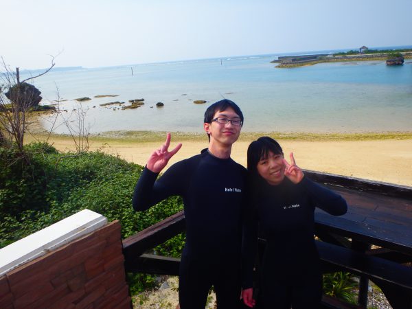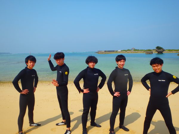 初めてのウェットスーツも、初めての沖縄の海も、笑いが絶えませんねー☆