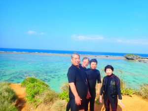 風が強くても天気は最高!シュノーケル後に秘密の展望台からの絶景を楽しんでもらいました。